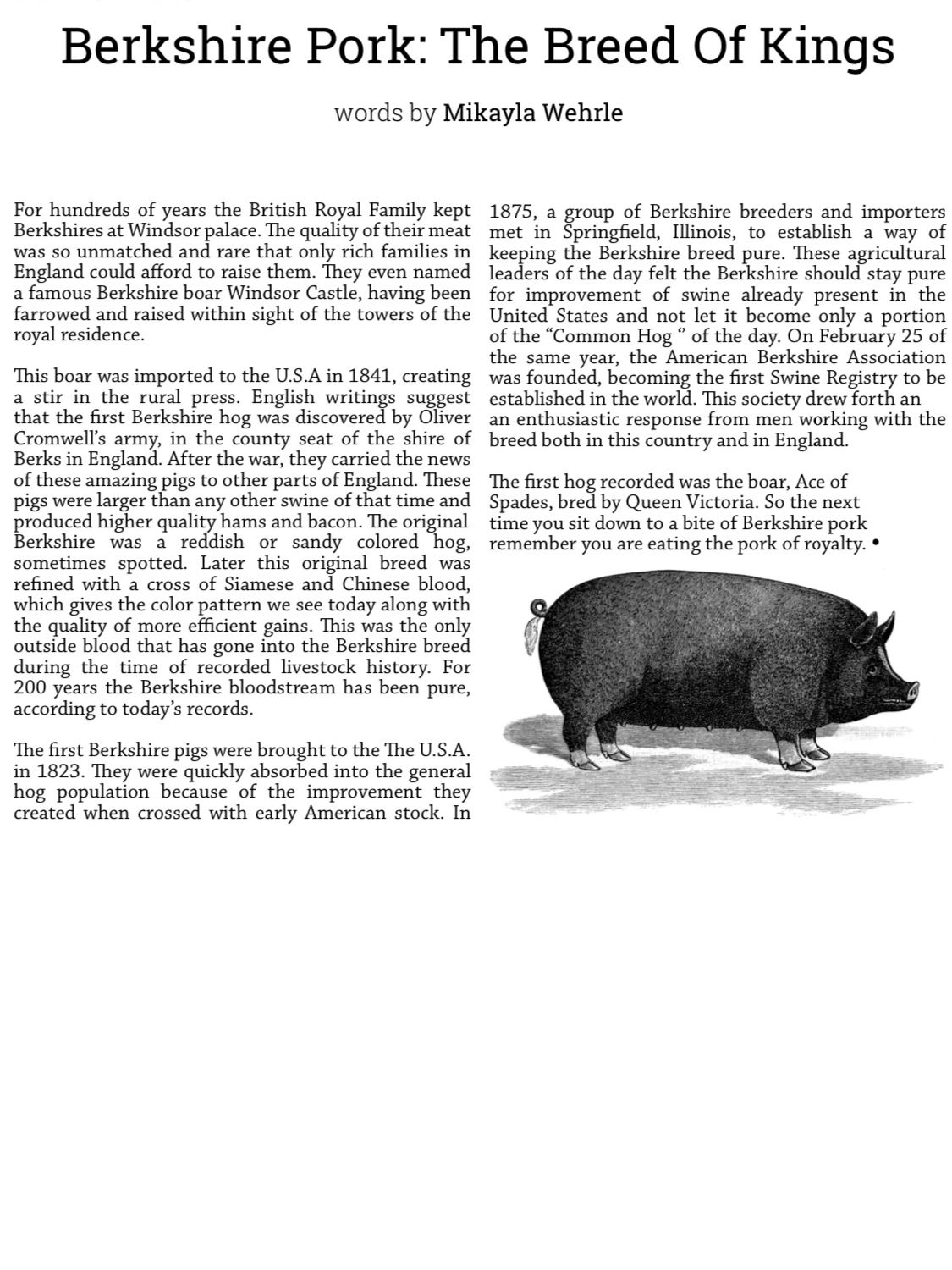 We have tested many pigs the past few years, trying to find our favorite pig. We found the Berkshire to be THE BEST out there! Their ‘royal’ meat is by far the best pig meat we have ever had. It’s often called the ‘other red meat’, as opposed to the low fat varieties that are comparable to chicken. Berkshire meat is red and laced with fat that gives it a sweet, flavorful, pig taste. It’s also commonly called ‘Royal Meat’ due to British Royalty and English History. (Read more further down this page.)