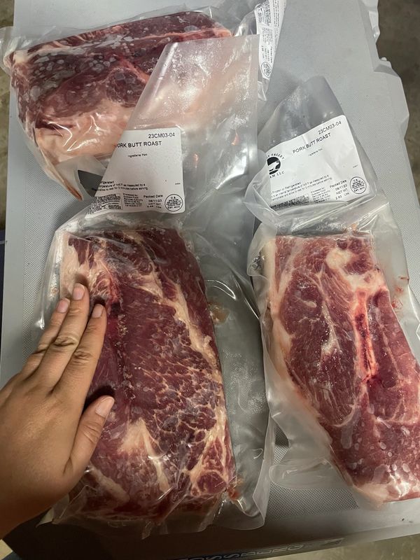 We have seasonal Berkshire cuts available at our farm and farmer’s markets. In order to sell meat in Arkansas, we have to have meat USDA Certified and Butchered. This takes a special facility. We drive 2+ hours away, to have our pigs processed for you! These are our cuts at market.